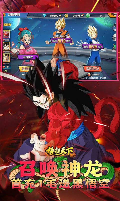 4、首充1毛即送黑悟空,豪华版神·布罗利超赛变身无敌压迫!