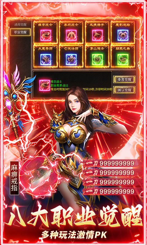 6、八职业觉醒:达到指定条件可觉醒对应职业,共八种职业选择。