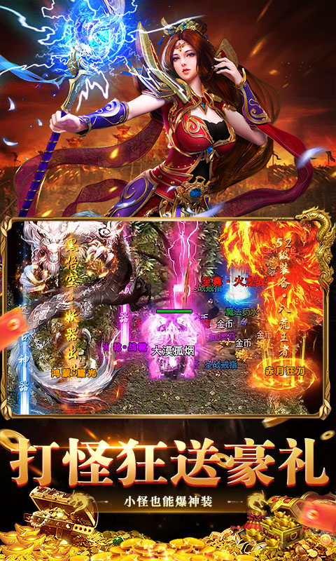 3、创角豪礼:创角即送赤月装备、幸运+9、自动范围拾取