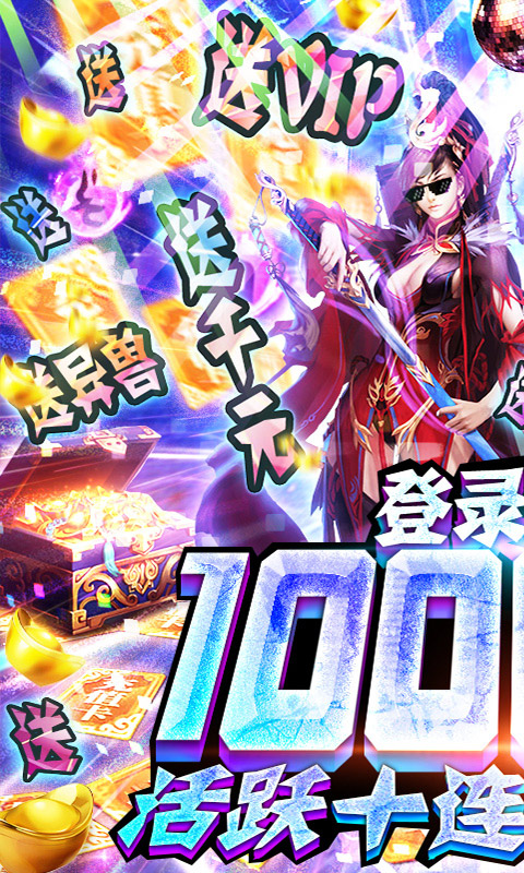 1.上线就送至尊VIP14!所有VIP白嫖充值卡免费送!充值比例1:500!立刻领取28888元宝!188W金币!超多奖励领不完!