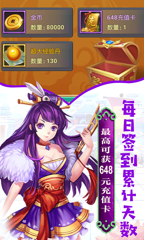 5、每天签到,累计天数最高送648充值卡